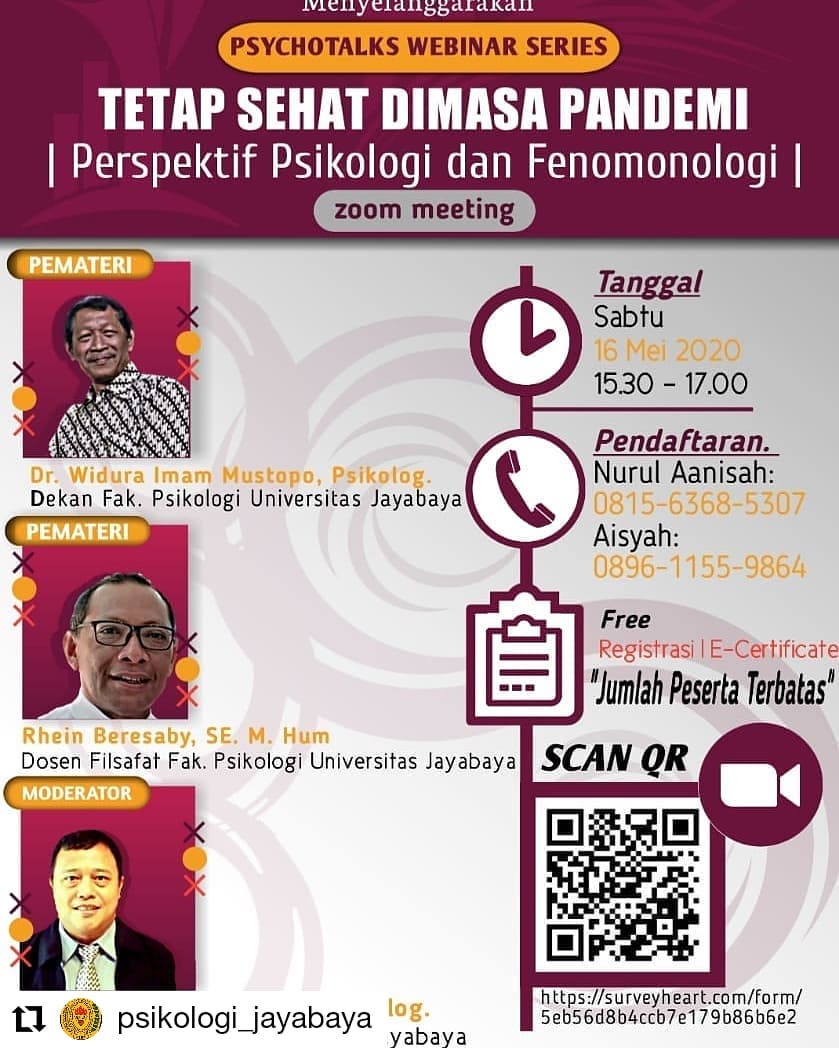 Melalui webinar ini, peserta diajak memahami bagaimana pandemi memengaruhi kondisi psikologis individu, mulai dari perubahan rutinitas, tekanan emosional, hingga dinamika sosial yang muncul akibat pembatasan aktivitas. Pendekatan fenomenologi digunakan untuk melihat pengalaman manusia secara lebih mendalam, sehingga setiap peserta dapat belajar mengenali respons dirinya sendiri terhadap situasi krisis.