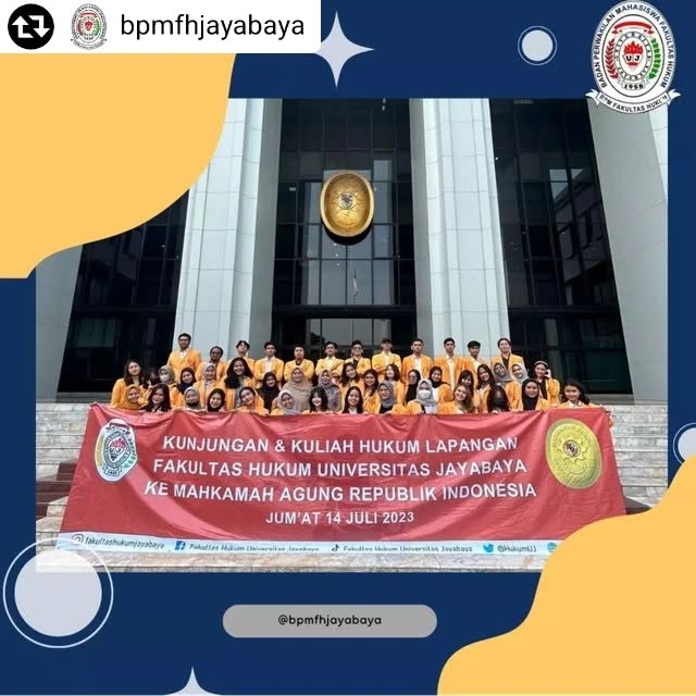Fakultas Hukum Universitas Jayabaya melaksanakan kegiatan Kunjungan dan Kuliah Hukum Lapangan ke Mahkamah Agung Republik Indonesia pada Jum’at, 14 Juli 2023. Kegiatan ini merupakan bagian dari pembelajaran kontekstual yang bertujuan untuk memperluas wawasan mahasiswa mengenai praktik peradilan dan sistem hukum di Indonesia secara langsung.