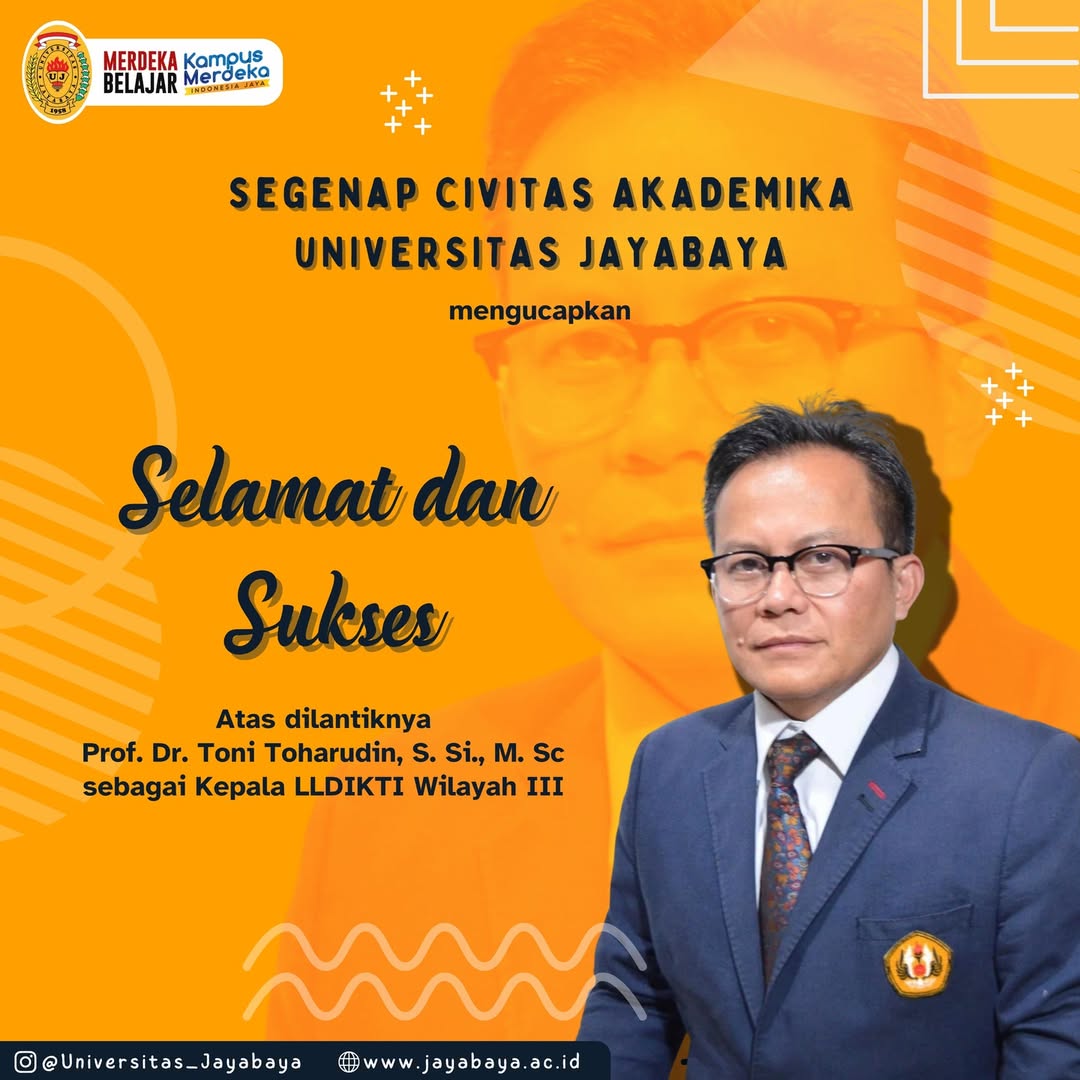 Segenap Civitas Akademika Universitas Jayabaya mengucapkan Selamat dan Sukses kepada Prof. Dr. Toni Toharudin, S.Si., M.Sc. atas pelantikannya sebagai Kepala LLDIKTI Wilayah III.