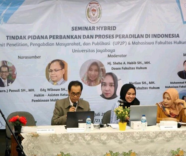 Fakultas Hukum Universitas Jayabaya sukses menyelenggarakan seminar hybrid bertajuk “Tindak Pidana Perbankan dan Proses di Peradilan Indonesia” pada Jumat, 22 Juli 2022.