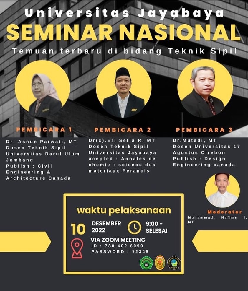 Universitas Jayabaya dengan bangga mempersembahkan seminar nasional “Temuan Terbaru di Bidang Teknik Sipil”
