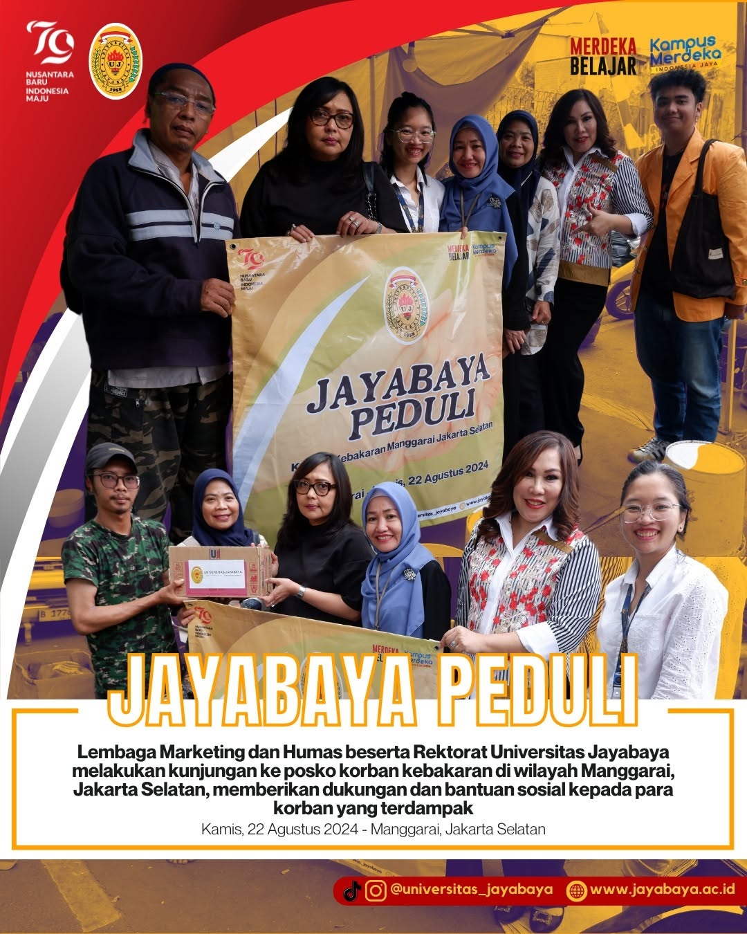 Universitas Jayabaya memberikan bantuan sosial berupa sembako dan pakaian layak pakai untuk meringankan beban korban. Bantuan ini diharapkan dapat memenuhi kebutuhan dasar mereka pasca kehilangan tempat tinggal dan harta benda.