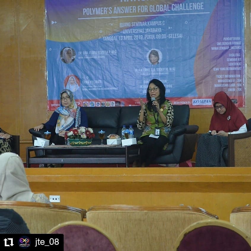 Seminar ini menghadirkan narasumber berpengalaman, yaitu Dr. Dra. Flora Elvista F.M., S.I, Ir. FM SA Soekotjo, M.Sc, dan Erna Yuliwati, yang masing-masing memaparkan perspektif mendalam terkait inovasi material, penerapan teknologi polimer, serta peluang pengembangan yang berkelanjutan. Topik yang dibahas mencakup perkembangan terbaru dunia polimer, kontribusinya terhadap solusi lingkungan, dan potensi aplikasinya dalam industri modern.