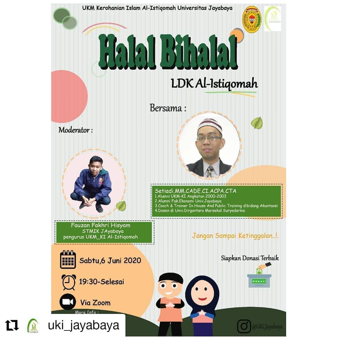 Kami mewakili seluruh pengurus UKM-KI Al Istiqomah Universitas Jayabaya memohon maaf lahir dan batin atas segala kekhilafan. Dalam rangka mempererat silaturahmi, kami akan menyelenggarakan Halal Bihalal bersama pengurus, anggota, dan alumni, yang akan diisi oleh Akhi Setiadi, mantan pengurus UKM-KI (2000–2003) yang kini menjadi dosen di Universitas Dirgantara Marsekal Suryadarma