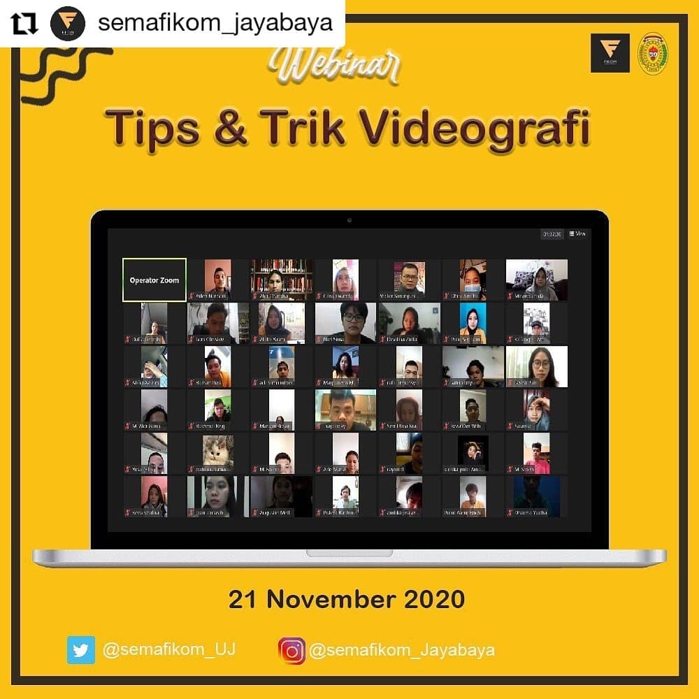 Senat FIKOM Universitas Jayabaya mempersembahkan Webinar “Tips & Trik Videografi” yang digelar pada Sabtu, 21 November 2020 via Zoom Meeting. Webinar ini diperuntukkan bagi mahasiswa Fakultas Ilmu Komunikasi Universitas Jayabaya sebagai sarana belajar dan mengembangkan kemampuan di bidang videografi.