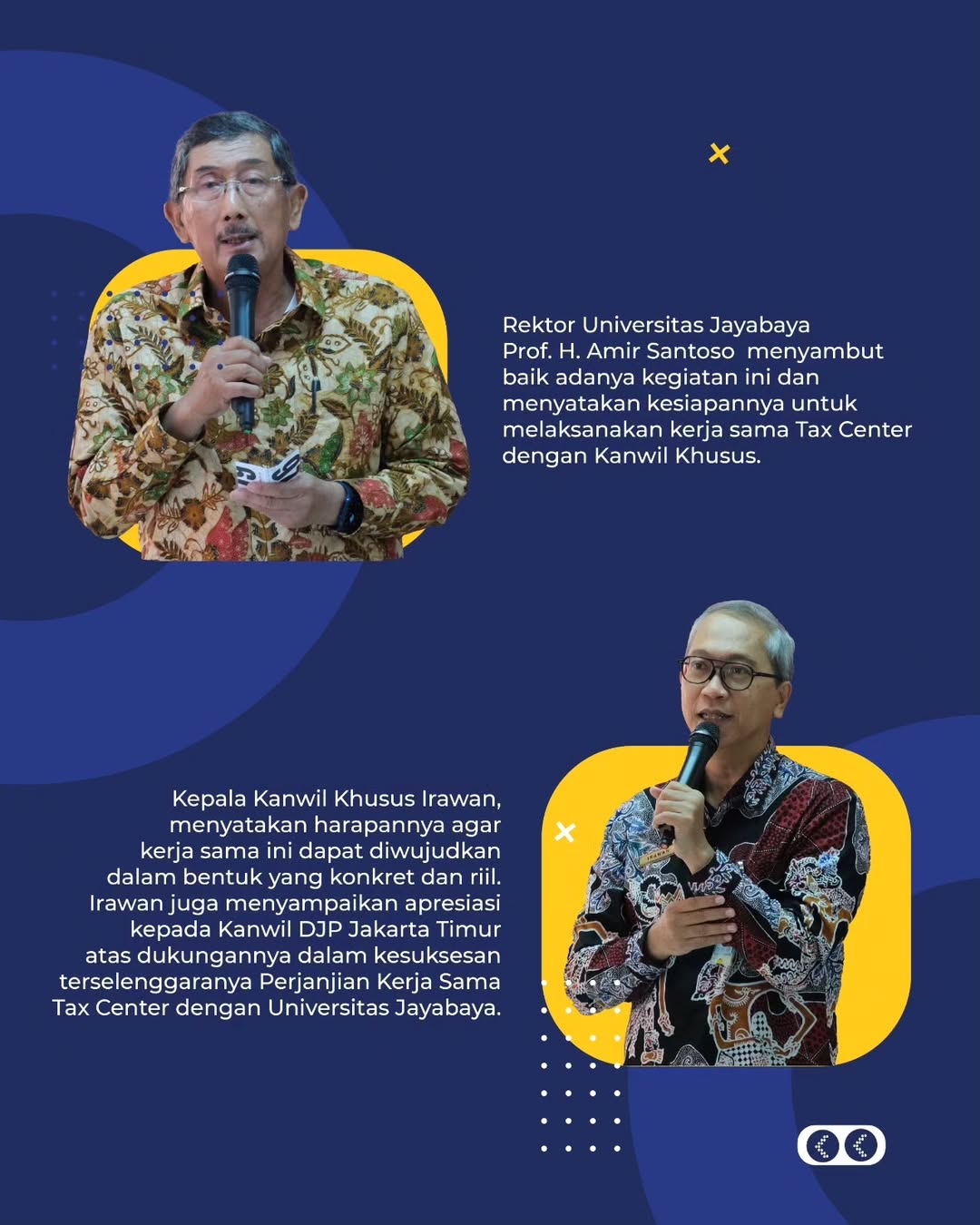 Kanwil DJP Jakarta Khusus menyampaikan apresiasi dan terima kasih kepada Universitas Jayabaya serta Kanwil DJP Jakarta Timur atas terjalinnya kerja sama yang baik dalam upaya membangun kesadaran pajak di kalangan mahasiswa Universitas Jayabaya. Sinergi ini diharapkan dapat memberikan manfaat berkelanjutan bagi dunia pendidikan dan masyarakat luas.