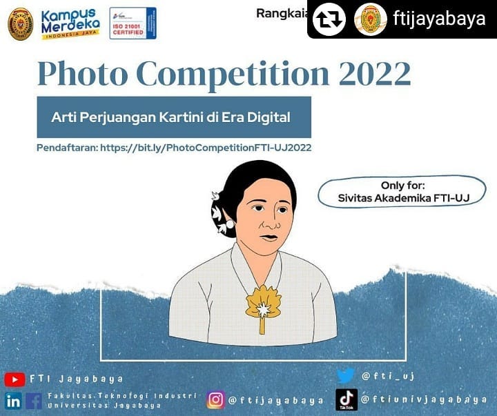 Dalam rangka memperingati Hari Kartini 2022, Fakultas Teknologi Industri Universitas Jayabaya dengan bangga mempersembahkan Photo Competition 2022 dengan tema: “Arti Perjuangan Kartini di Era Digital”