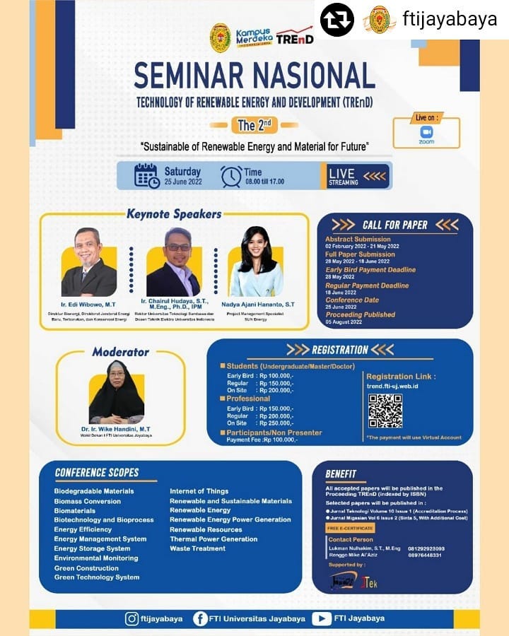 Seminar Nasional TREnD 2: Technology of Renewable Energy and Development
