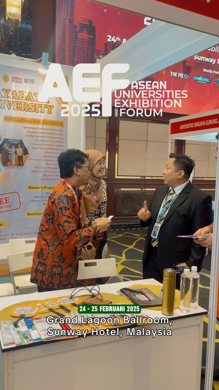 Universitas Jayabaya dengan bangga berpartisipasi sebagai peserta dalam ASEAN Universities Exhibition and Forum 2025 (AEF 2025) yang diselenggarakan pada 24–25 Februari 2025 di Grand Lagoon Ballroom, Sunway Resort Hotel, Petaling Jaya, Selangor, Malaysia.