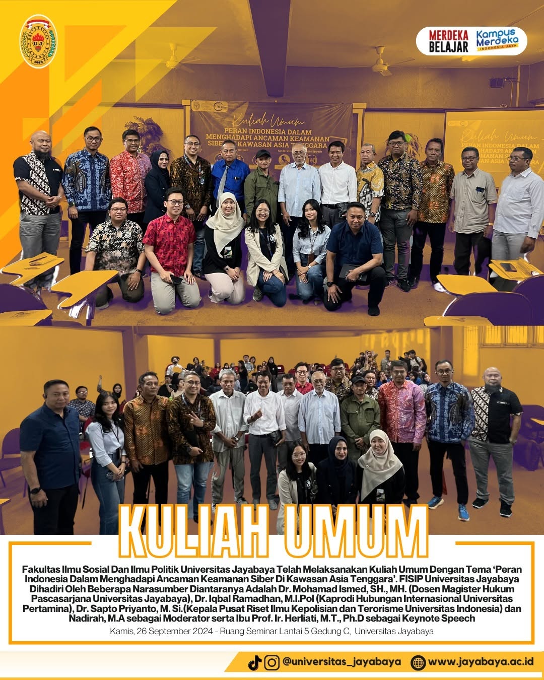 “Peran Indonesia Dalam Menghadapi Ancaman Keamanan Siber di Kawasan Asia Tenggara” pada Kamis, 26 September 2024 di Ruang Seminar Gedung C.
