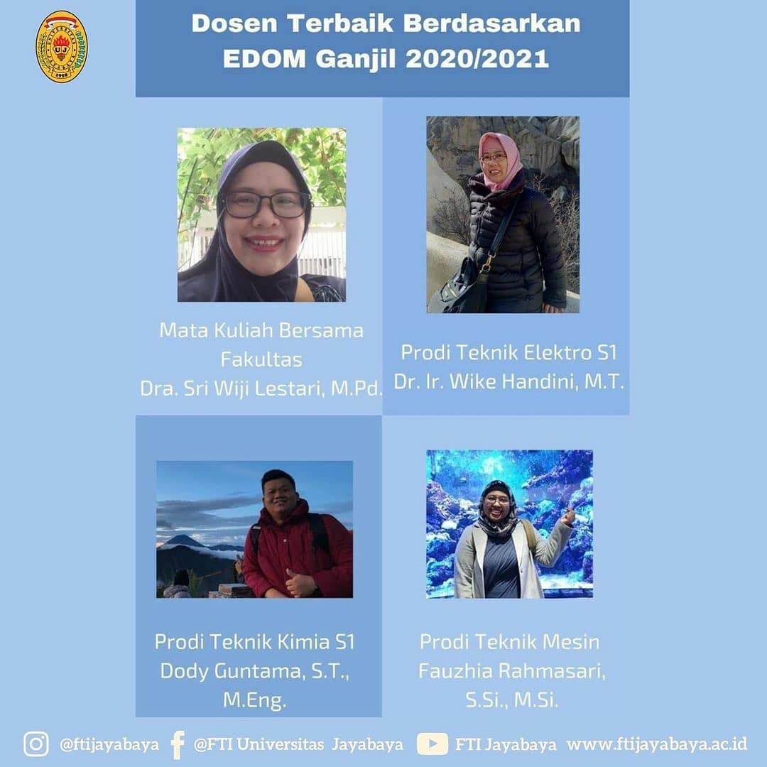 Universitas Jayabaya mengumumkan Dosen Terbaik di FTI berdasarkan hasil Evaluasi Dosen oleh Mahasiswa (EDOM) tahun 2020/2021