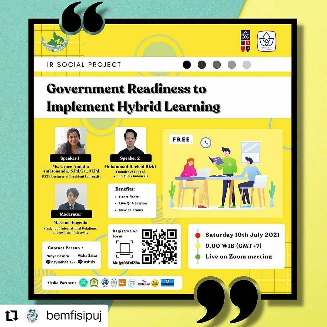 BEM FISIP Universitas Jayabaya telah sukses melaksanakan webinar dengan tema “Kesiapan Pemerintah untuk Menerapkan Pembelajaran Hybrid” yang dilaksanakan pada Sabtu, 10 Juli 2021. Kegiatan ini dihadiri oleh dua pembicara luar biasa yaitu Ms. Grace Amialia Anferonanda dan Muhammad Haebad Rizki yang memberikan pemaparan yang inspiratif dan membuka pandangan baru mengenai tantangan serta peluang pendidikan hybrid di Indonesia. BEM FISIP UJ juga menjadikan acara ini sebagai momentum penting dalam mendukung IR Social Project melalui penggalangan donasi yang akan disalurkan ke Desa Jarakosta sebagai bentuk nyata kepedulian sosial.